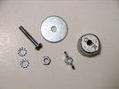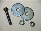 parts in the picture on the left. Bolt, two lock washers, flange washer,